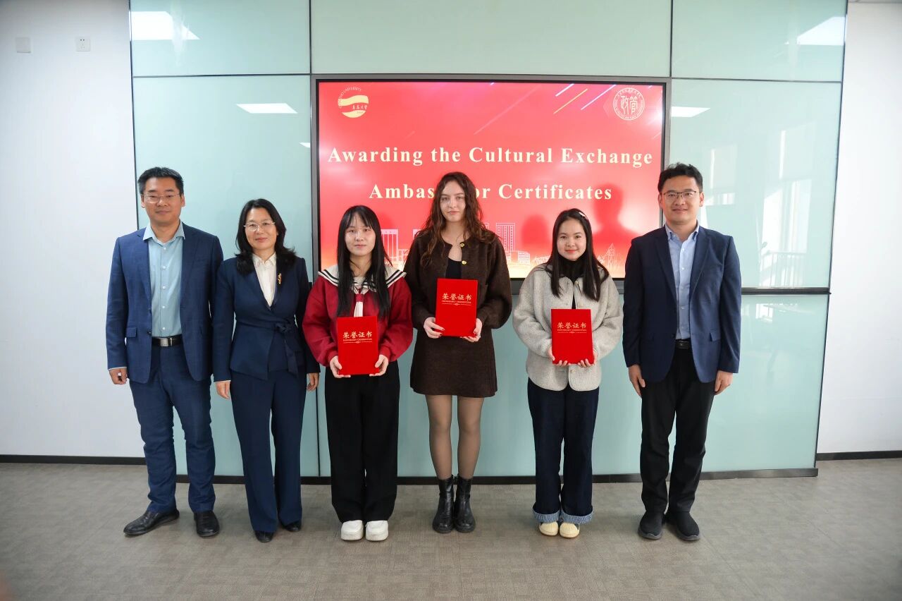 2025级国际关系专业研究生Elizaveta Butorina(俄罗斯)、Ngo Nguyen Ngoc Huyen(越南)和Dinh Thi Thom(越南)颁发“文明交流大使证书”,表彰三位留学生在积极融入校园文化、促进中外文化交流与融合方面做出的努力。
