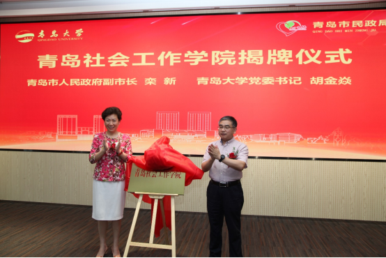 致辞结束后,栾新副市长、胡金焱书记共同为青岛社会工作91直播