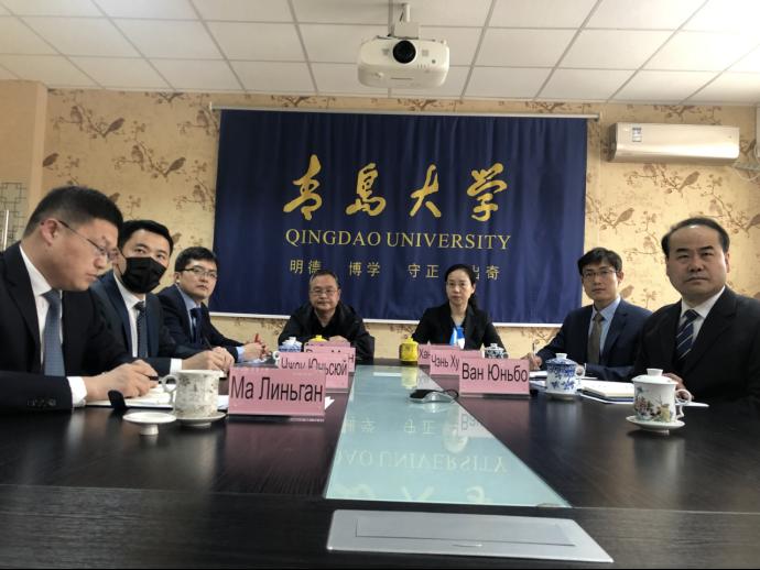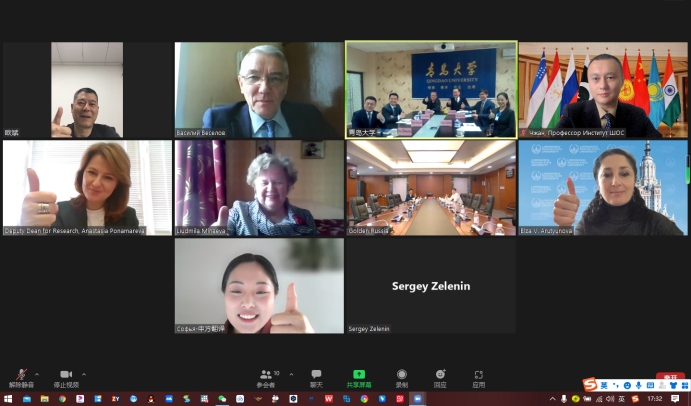 与莫斯科国立大学促进国际合作的线上会议。陈洪连院长、韩庆娜副院长、王猛副院长、李广民教授和欧斌教授参加了会议。会议由上合组织经贸91直播