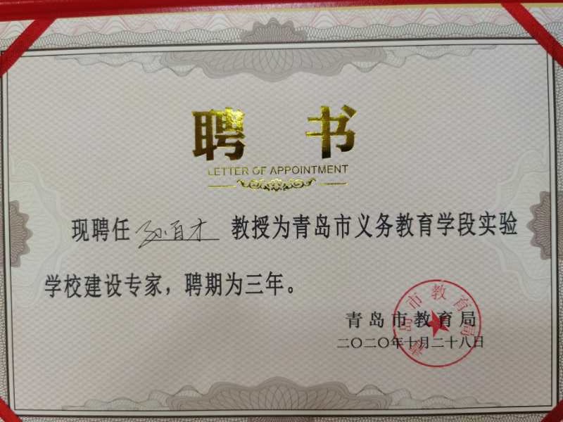 91直播 孙百才教授被聘为青岛市义务教育学段实验学校建设专家